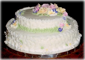 My mom had done cake decorating for years and make the most spectacular cakes. I’d sit at the kitchen table as a child watching her as she made all the flowers, put cakes up on pillars and delicately draped the piping in perfect arches. Her cakes were sought by all her friends for weddings, anniversaries and kids’ birthdays. The girls in my school always wanted to come to my birthday parties for two reasons: to ride the horses and see what my mom would cook up. I usually asked for a princess cake, the kind with the doll in the middle. Naturally I always felt inadequate compared to Mom; sure I could always bake (rule 1: Never follow the recipe exactly!), Mom taught all the kids in the neighborhood how to bake.