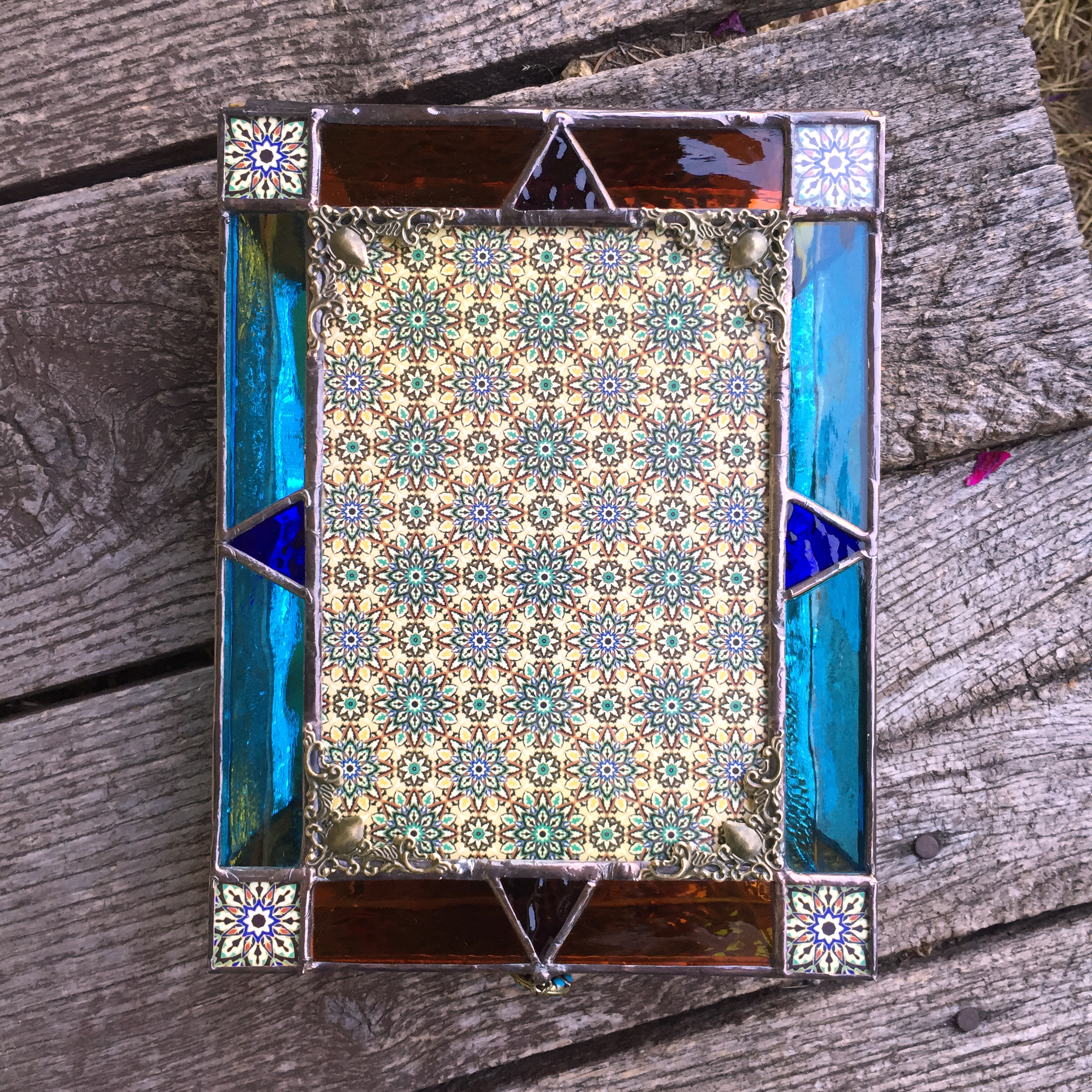 I love to design unique stained glass pieces for weddings, Bat Mitzvahs and other special occasions. I also make smaller glass boxes, wall hangings, sun catchers, mirrors and other functional art. I’m a full-time artist – designing stained glass, jewelry and freelance graphic design as well as teaching painting and craft classes through Art Nites.