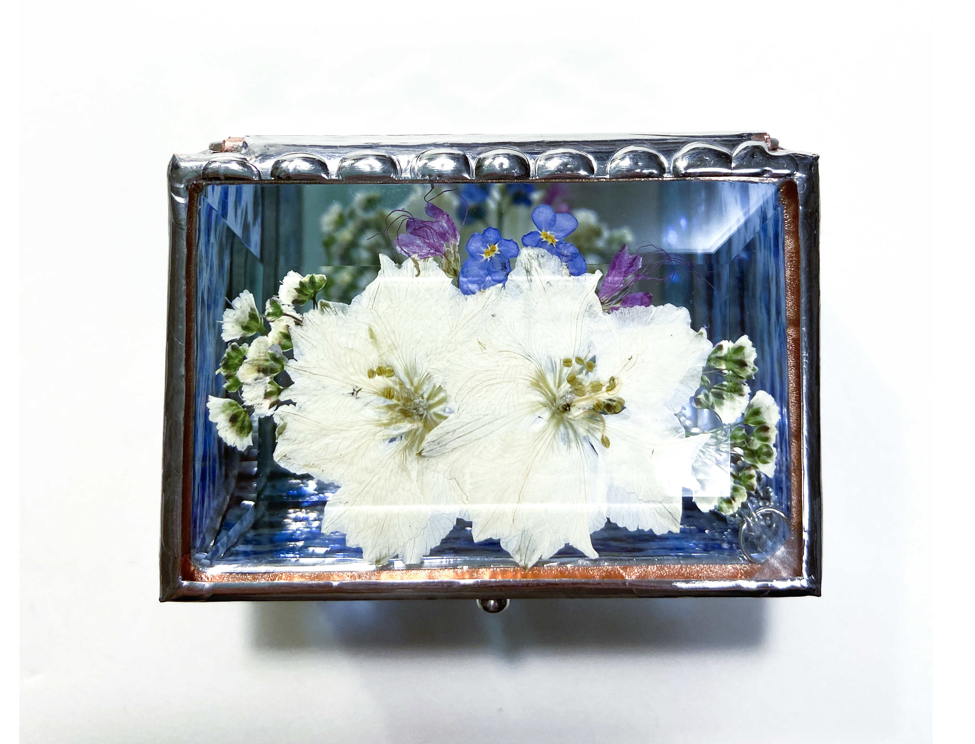I love to design unique stained glass pieces for weddings, Bat Mitzvahs and other special occasions. I also make smaller glass boxes, wall hangings, sun catchers, mirrors and other functional art. I’m a full-time artist – designing stained glass, jewelry and freelance graphic design as well as teaching painting and craft classes through Art Nites.