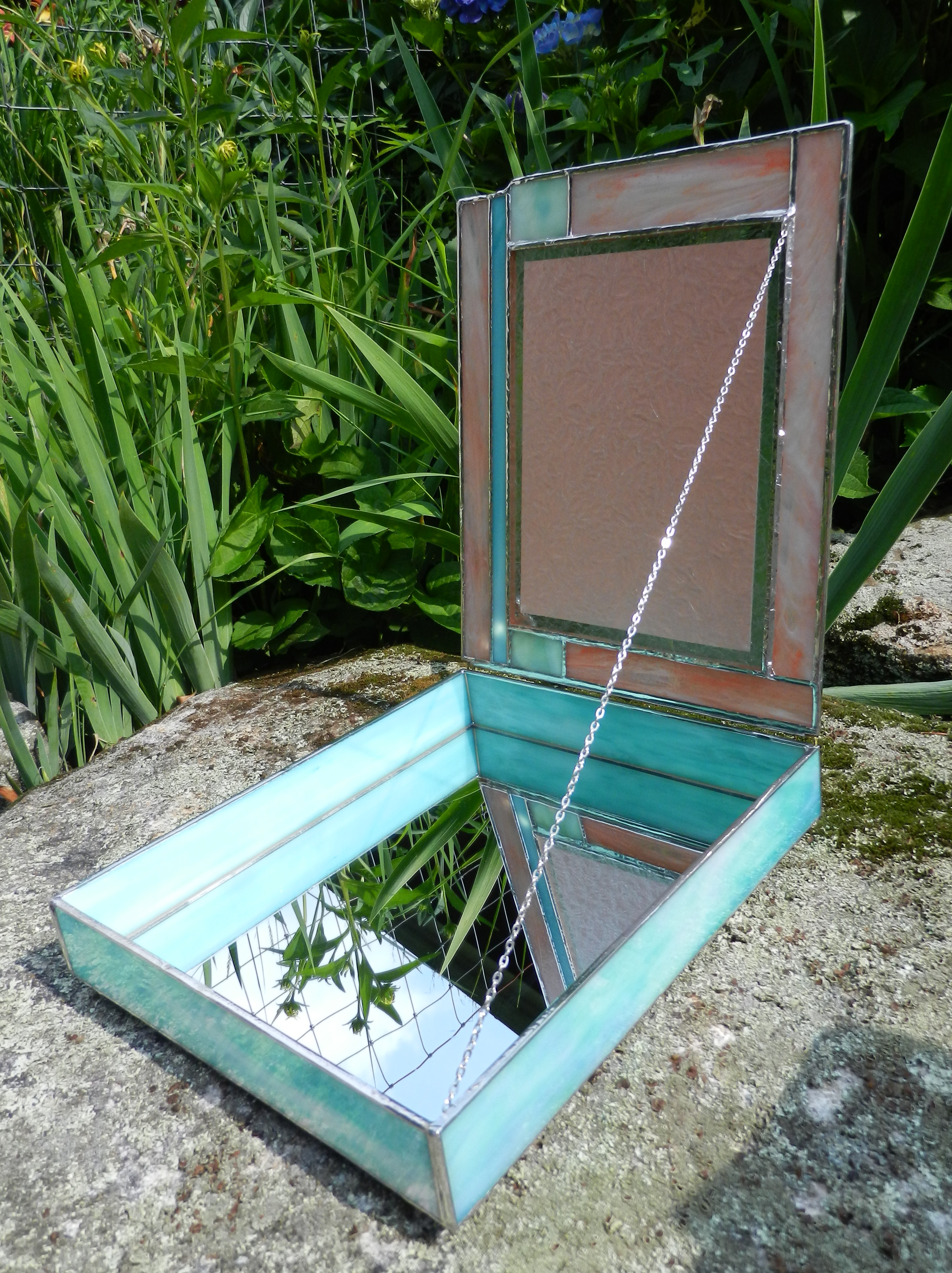 I love to design unique stained glass pieces for weddings, Bat Mitzvahs and other special occasions. I also make smaller glass boxes, wall hangings, sun catchers, mirrors and other functional art. I’m a full-time artist – designing stained glass, jewelry and freelance graphic design as well as teaching painting and craft classes through Art Nites.